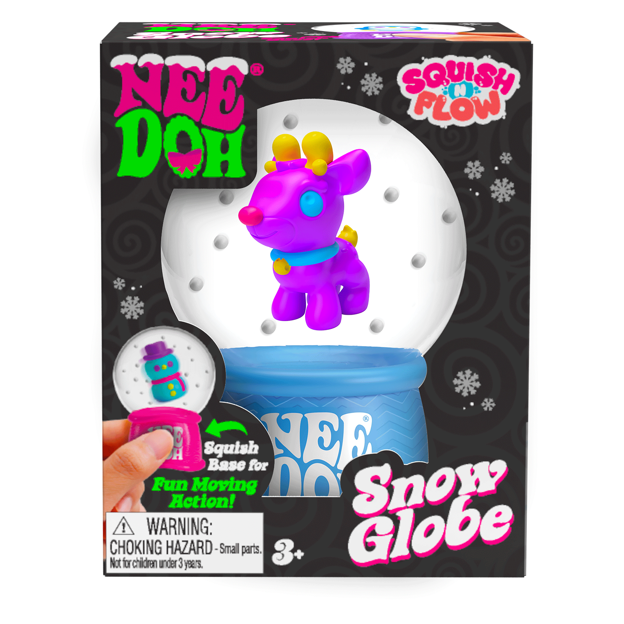 Bring winter magic to life with the NeeDoh Squish N Flow Snow Globe! Give the base a gentle squeeze and watch snowflakes swirl around adorable characters—penguin, snowman, or reindeer—in mesmerizing motion. This pint-sized sensory toy glows in the dark for extra enchantment and fits perfectly in your pocket for on-the-go fun. At just 2.5" tall, it's the ideal fidget companion for cozy nights or playful moments. Each pack includes one globe with surprise character styles!