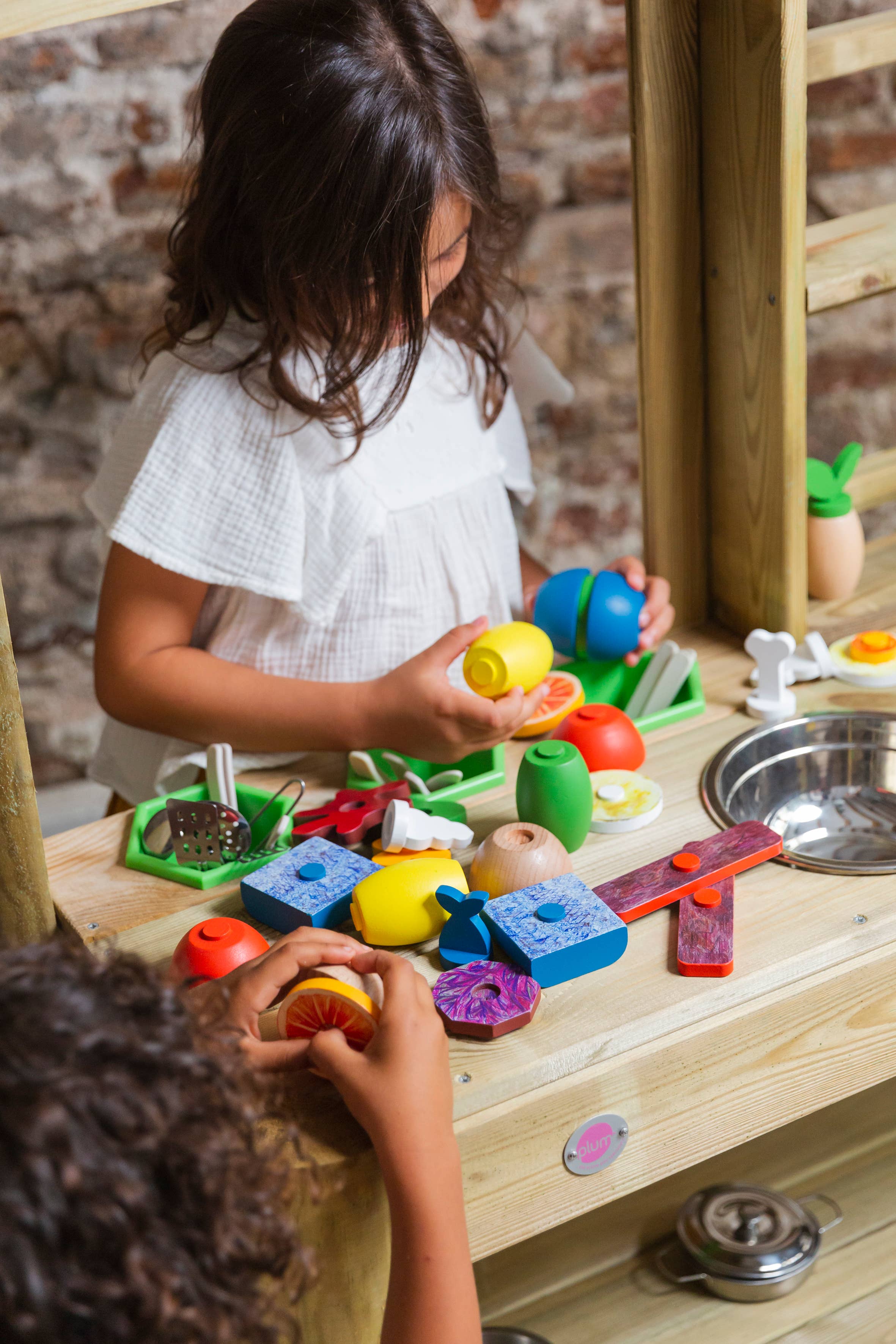 Fantasy Food is an open-ended construction game consisting of 20 pieces, made of FSC certified massive beech wood, where the children will be able to design their own food and make their own recipes.